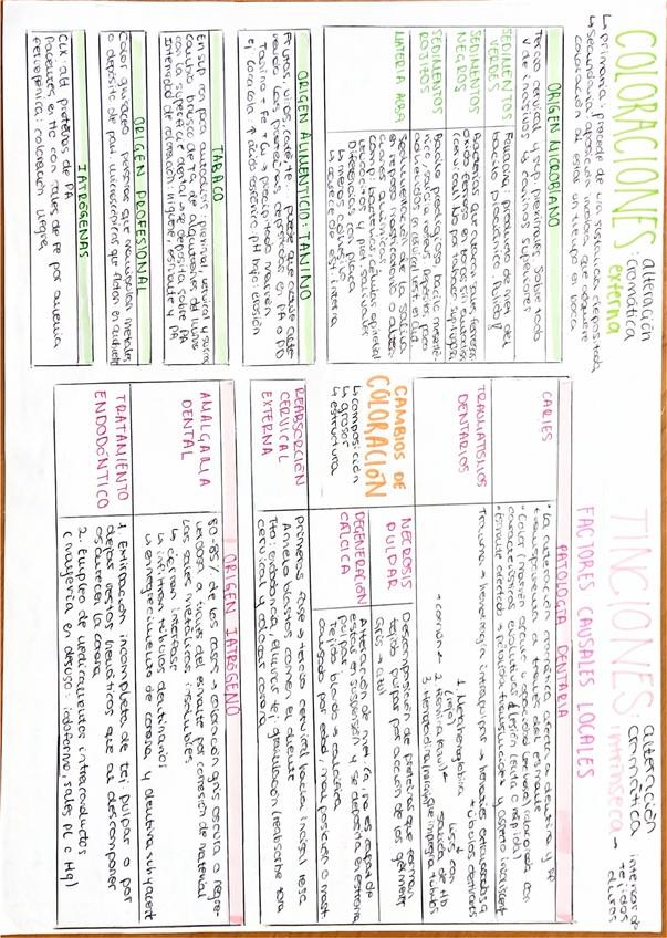 Esquema del tema Coloraciones y tinciones y de los dos temas de Patología Pulpar