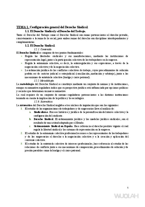 Temario completo 'Derecho Sindical'.