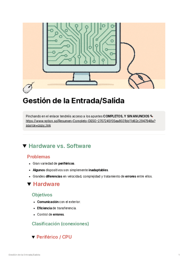 He publicado nuevos apuntes de 2º Diseño y Estructura de los Sistemas Operativos: DESO - Gestión de la Entrada-Salida.pdf
