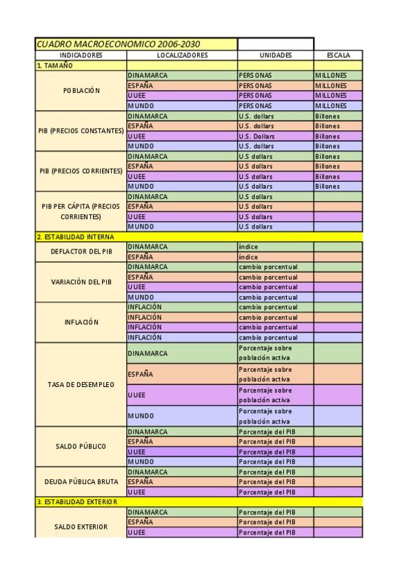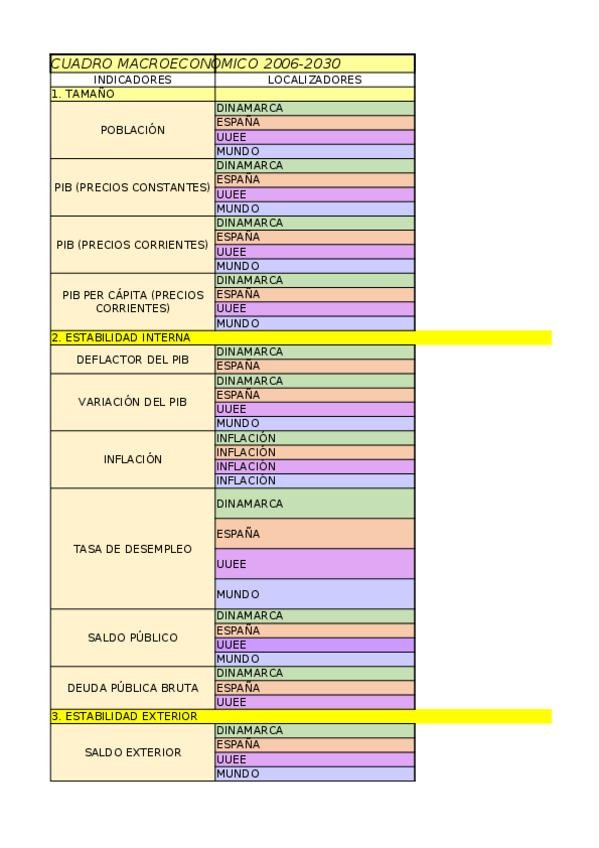 Cuadro macroeconómico en exel y en PDF