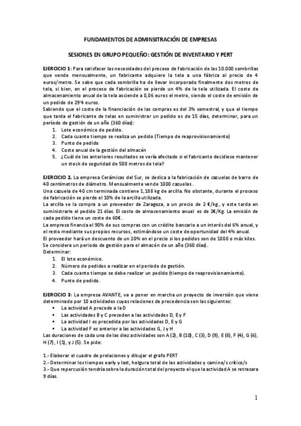 Los supuestos de los grupos pequeños los cuales están sacados de exámenes.