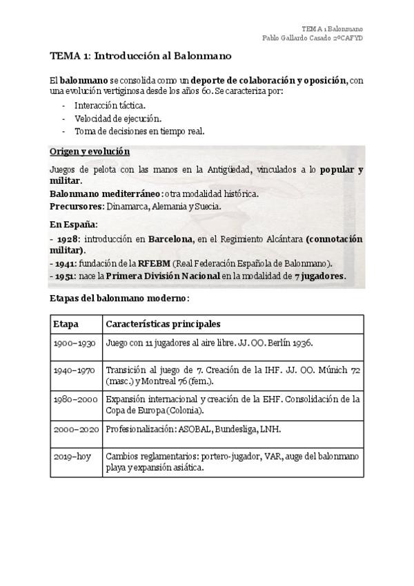 Apuntes Temario Balonmano