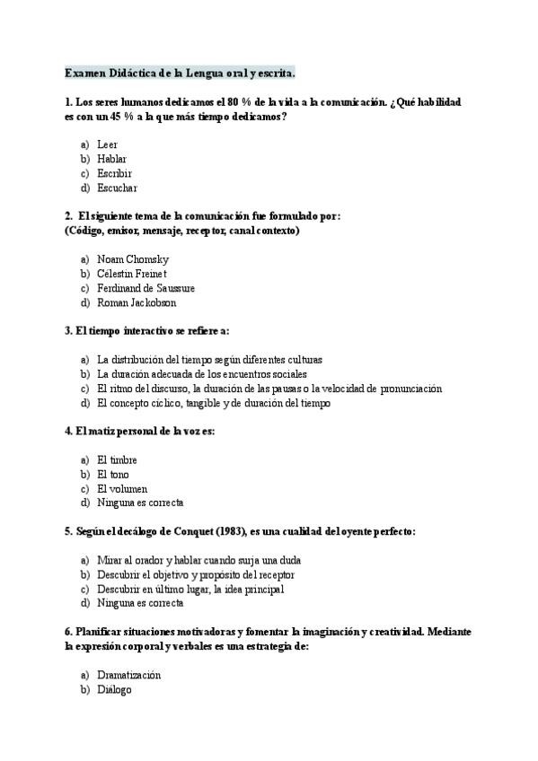He publicado nuevos examenes de 2º Didáctica de la lengua oral y escrita para la educación primaria: Preguntas-test-examenes.pdf