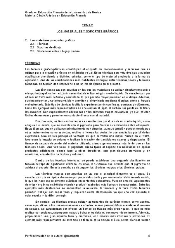 Apuntes de la asignatura de Dibujo Artístico en Educación Primaria, impartida doña Telma Barrantes Fernández en el segundo cuatrimestre del primer curso del grado en Educación Primaria en la Universidad de Huelva.