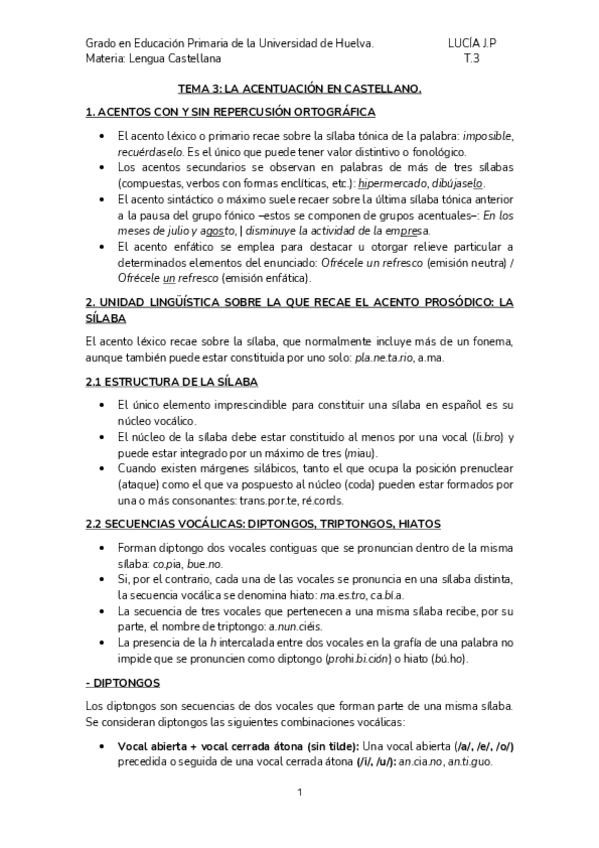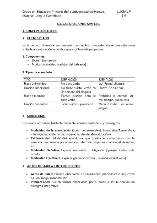Apuntes de la asignatura de Lengua Española, impartida por doña Coronada Sánchez Gómez en el primer cuatrimestre del primer curso del Grado en Educación Primaria en la Universidad de Huelva