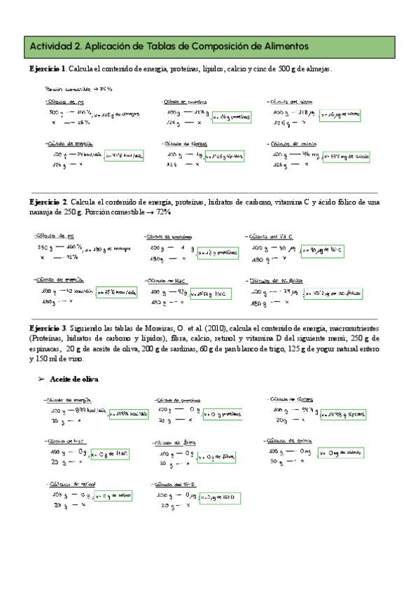 Alimentación, dietética y nutrición - ACTIVIDADES GRUPO PEQUEÑO