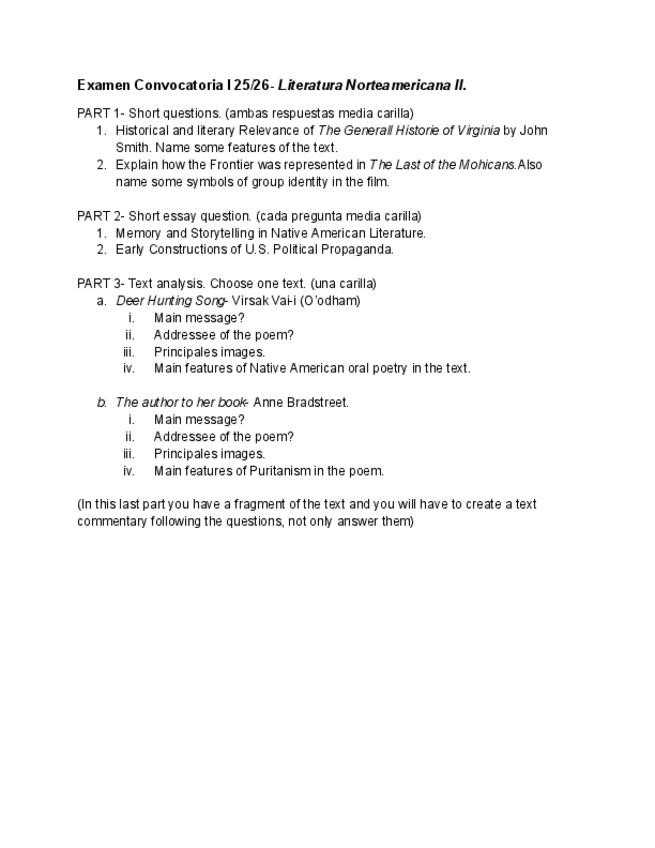 Preguntas de la Convocatoria I Enero curso 25/25 de Literatura Norteamericana II