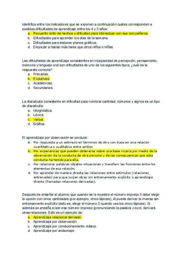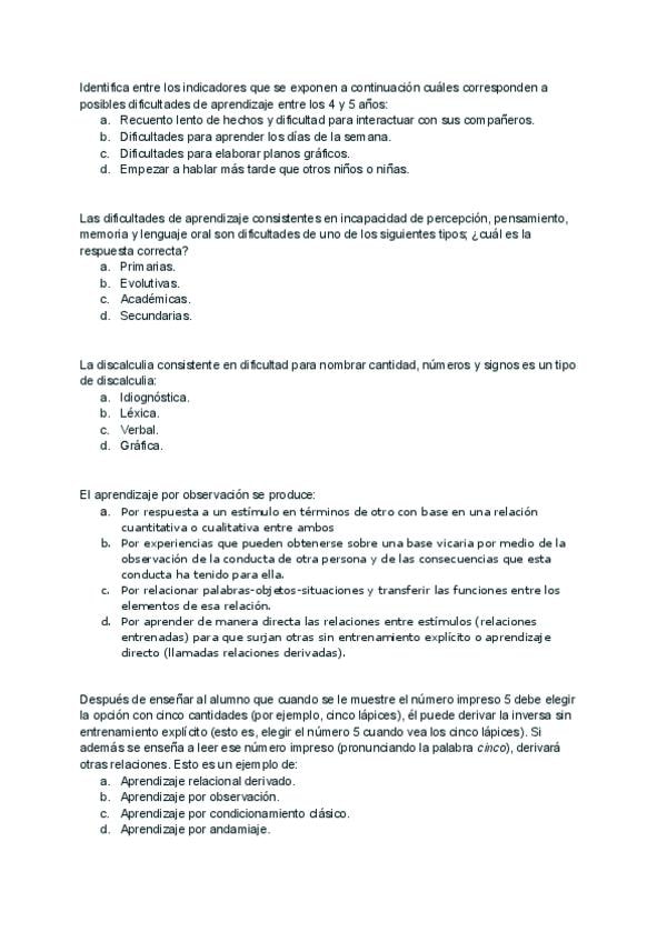 Cuestionario UD6 _con respuestas_ de la asignatura Psicología del Aprendizaje