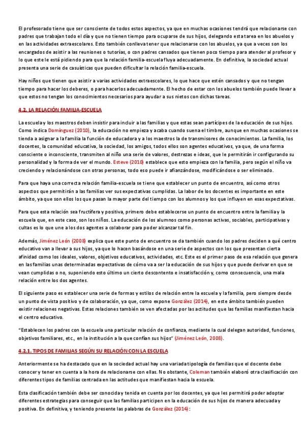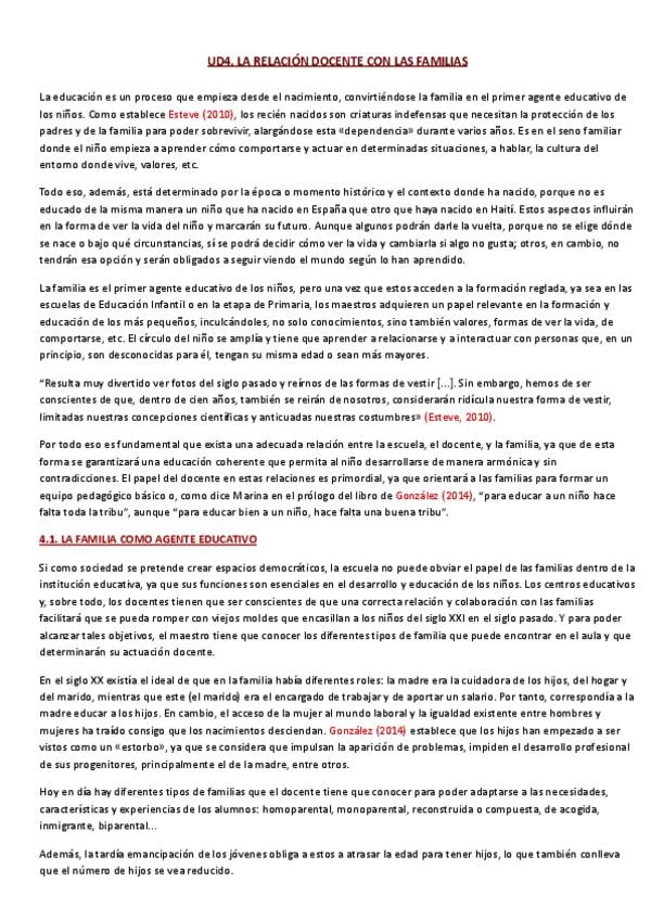 Resumen completo UD4 (La relación docente con las familias) de la asignatura Funciones Docentes y Competencias del Maestro