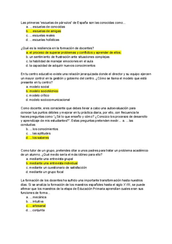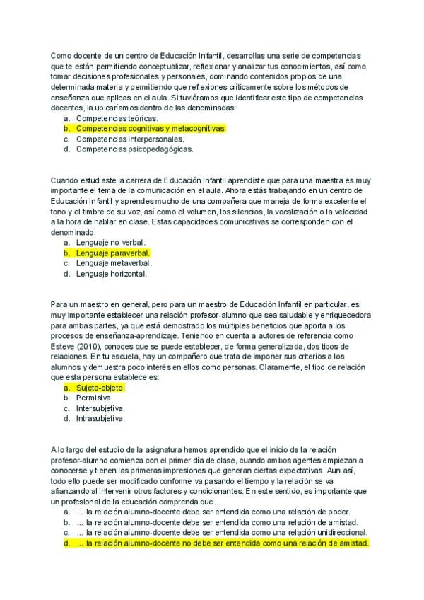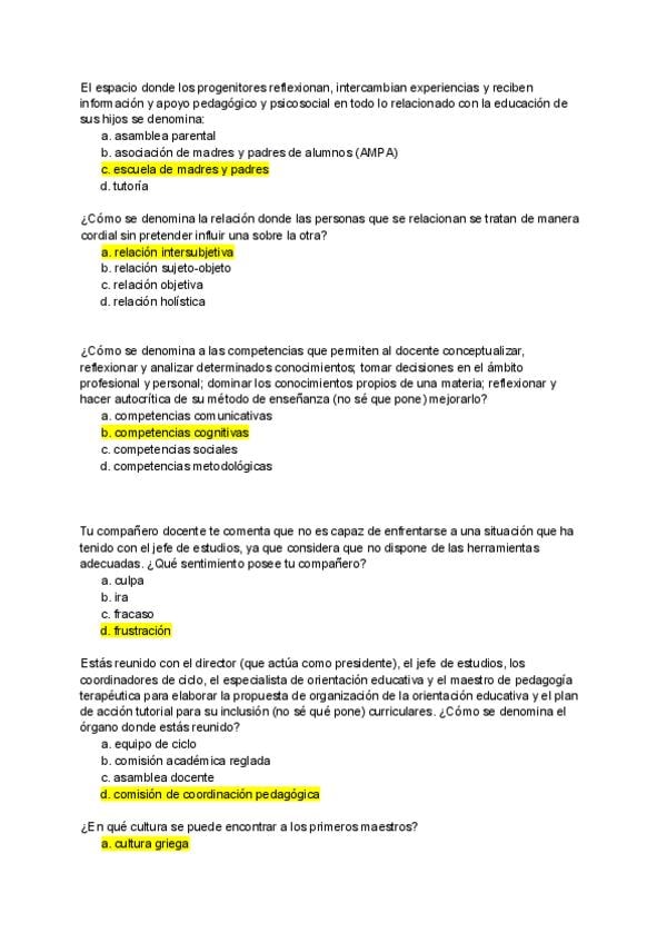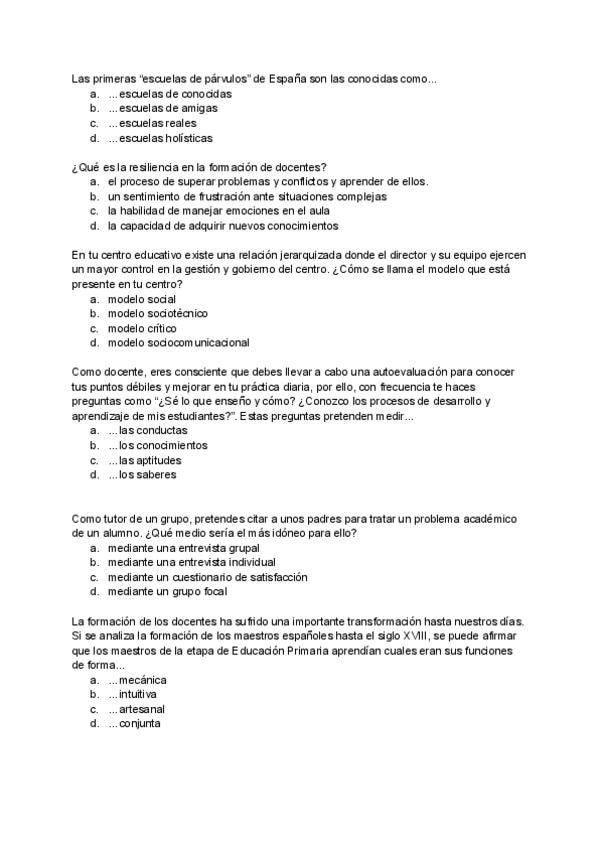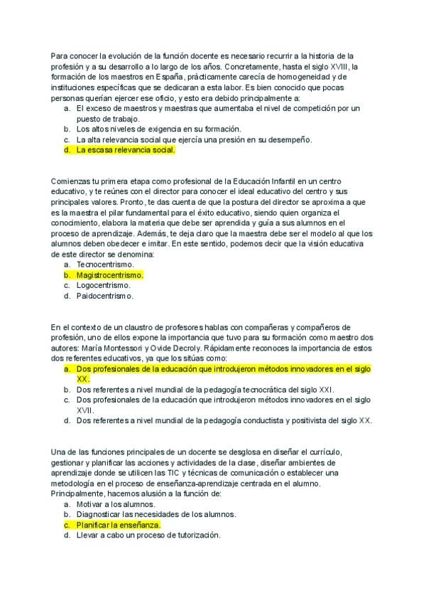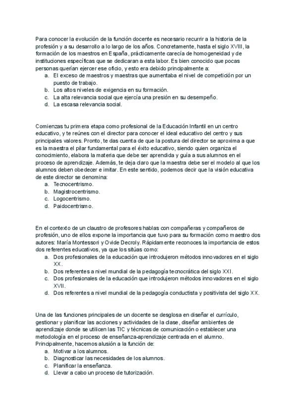 Preguntas examen año ? _con respuesta_ de la asignatura Funciones Docentes y Competencias del Maestro