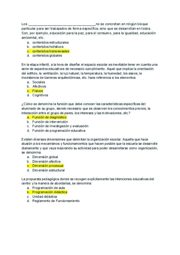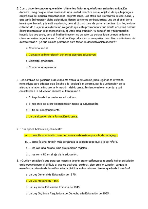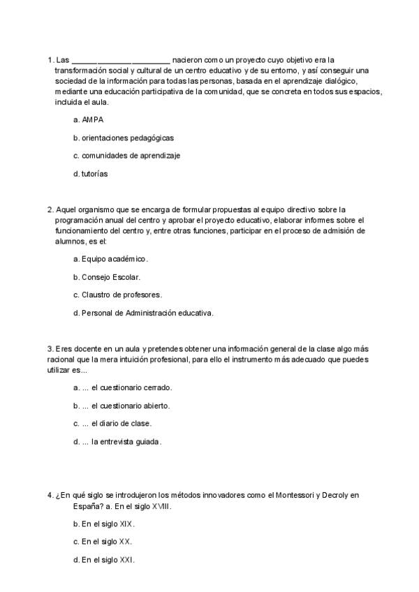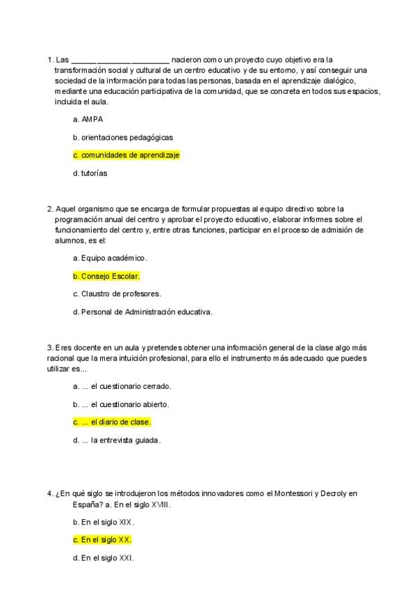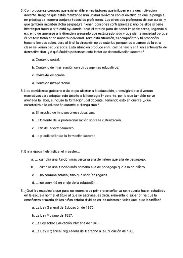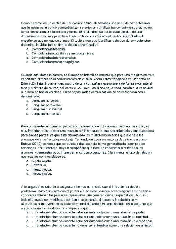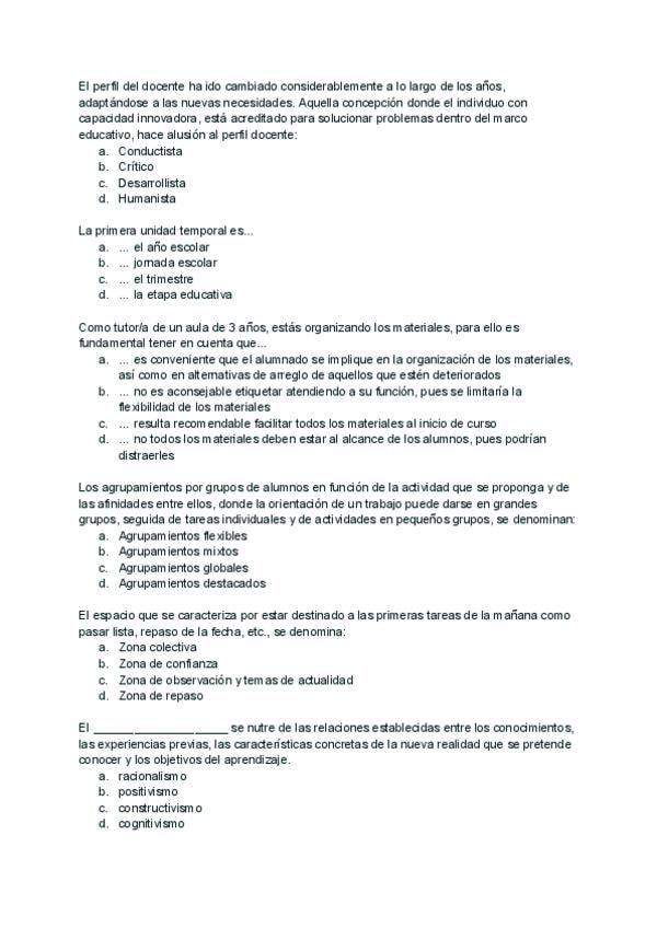 Preguntas examen año ? _con respuesta_ de la asignatura Funciones Docentes y Competencias del Maestro
