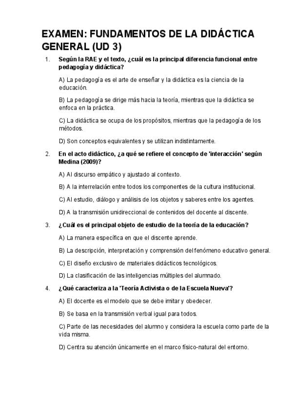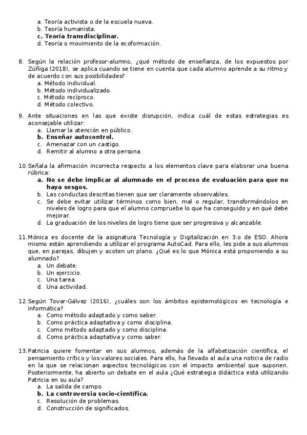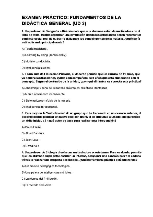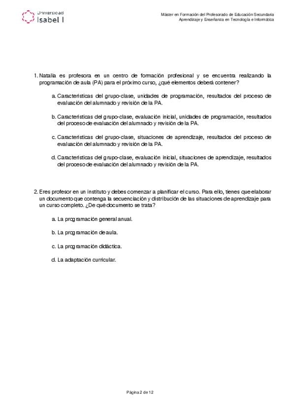 Examen de todos los temas de la asignatura Aprendizaje y Enseñanza. Incluye preguntas de teoría y otras aplicadas a la práctica (como en el examen oficial). Máster en formación del profesorado. Universidad Isabel I.