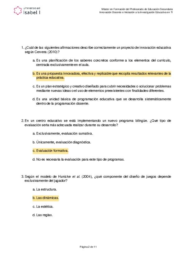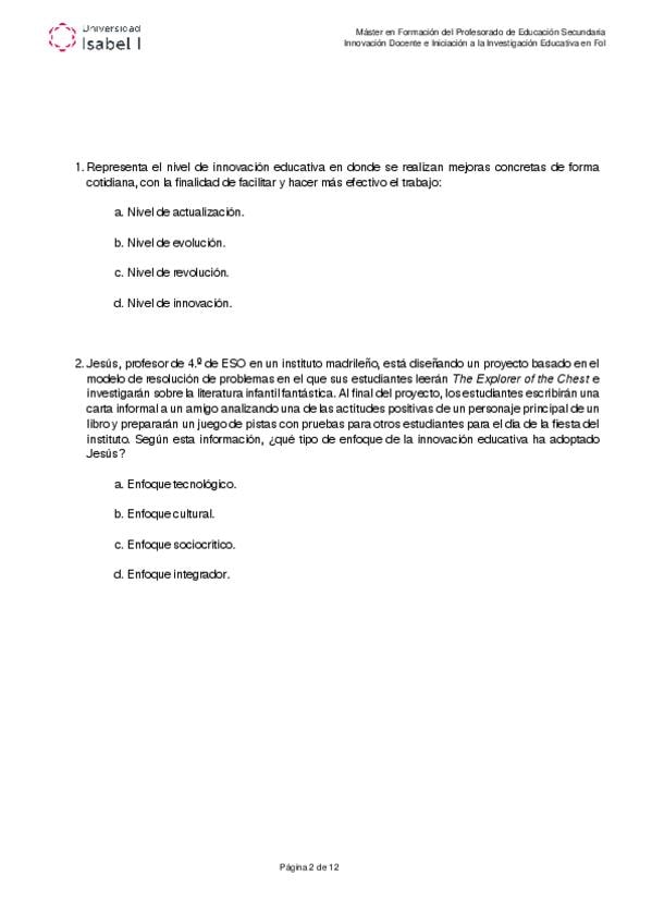 Examen oficial de la asignatura innovación e investigación docente. Máster formación del profesorado. Universidad Isabel I.
