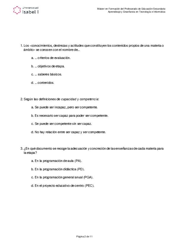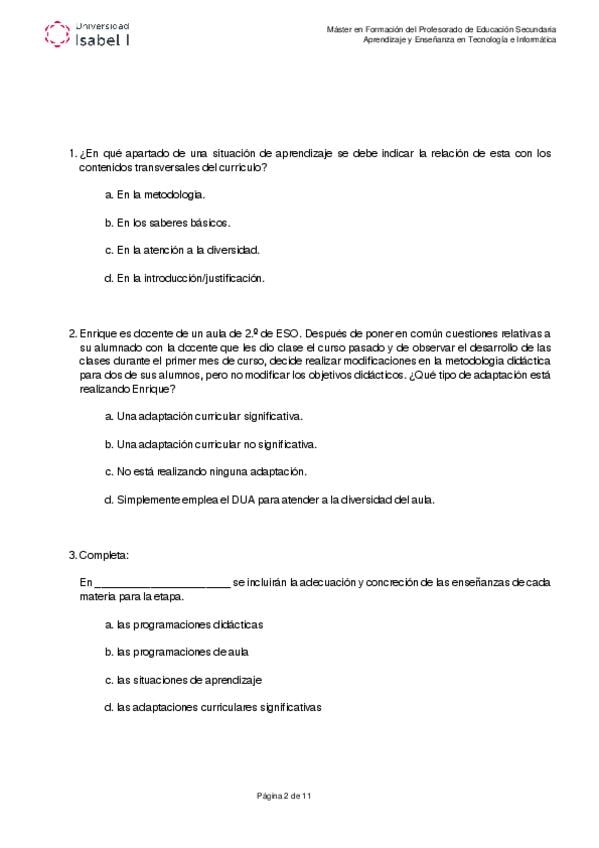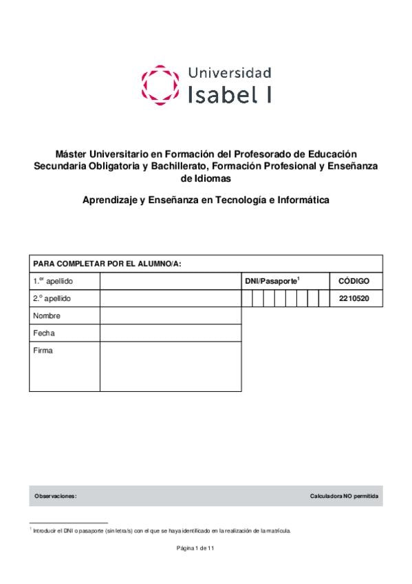 Examen oficial de la asignatura aprendizaje y enseñanza. Máster formación del profesorado. Universidad Isabel I.