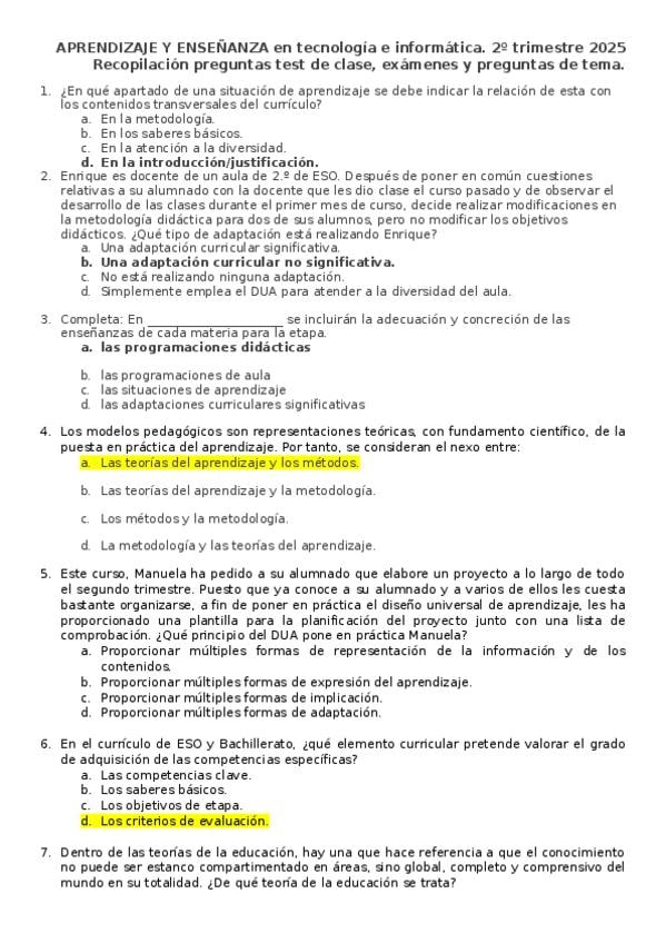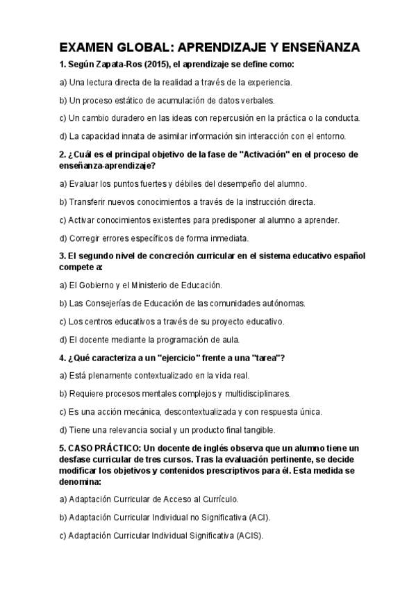 Recopilación de preguntas de exámenes de la asignatura de aprendizaje y enseñanza. Máster formación del profesorado. Universidad Isabel I.
