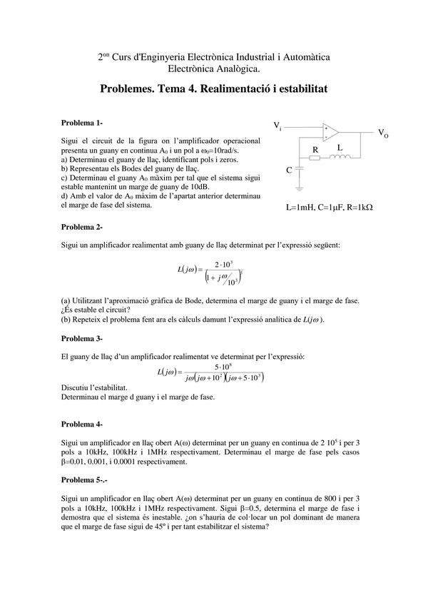 He publicado nuevos ejercicios de 2º Electrónica Analógica: Problemas-T4.pdf