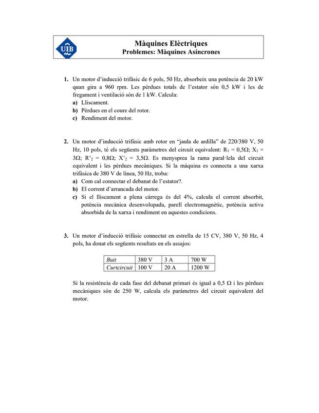 He publicado nuevos ejercicios de 3º Máquinas Eléctricas: Problemes-T6-Maquines-Asincrones.pdf