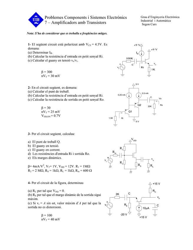 He publicado nuevos ejercicios de 2º Electrónica Analógica: Problemas-T1.pdf