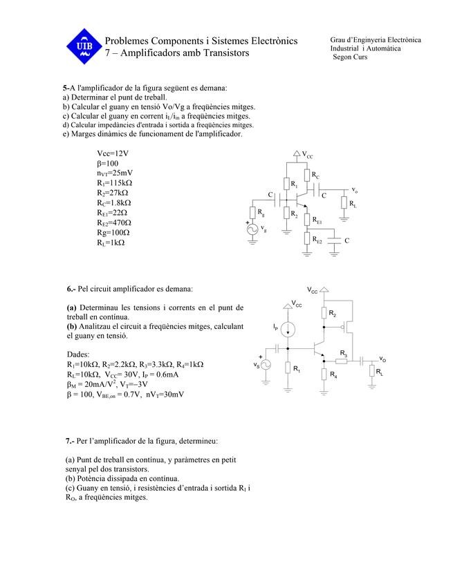 He publicado nuevos ejercicios de 2º Componentes y Sistemas Electrónicos: Amplificadores.pdf