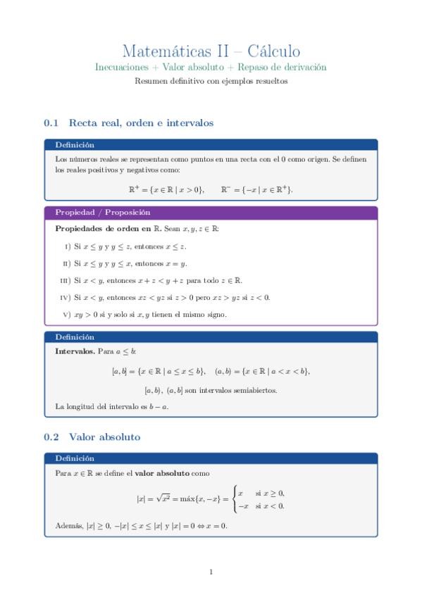 resumen de temas de introducción (inecuaiones y diferenciación); tema 1 (Sucesiones) y tema 2 (calculo diferencial) ;)