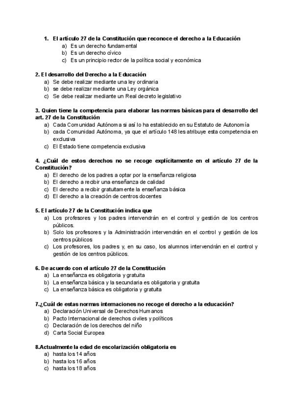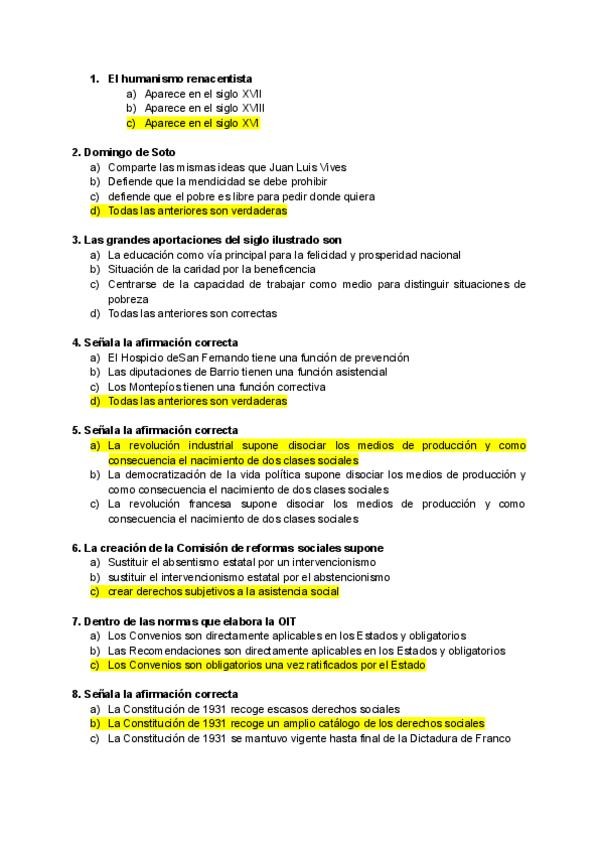 Son las practicas de derecho y bienestar social. Son los test, este es el ultimo del tema,, creo que fueron 15 preguntas, solo tengo las 11. Pero en los test siempre caen algunas preguntas de cada test que se han hecho a lo largo del curso y van para el