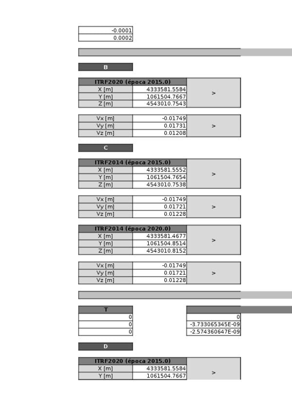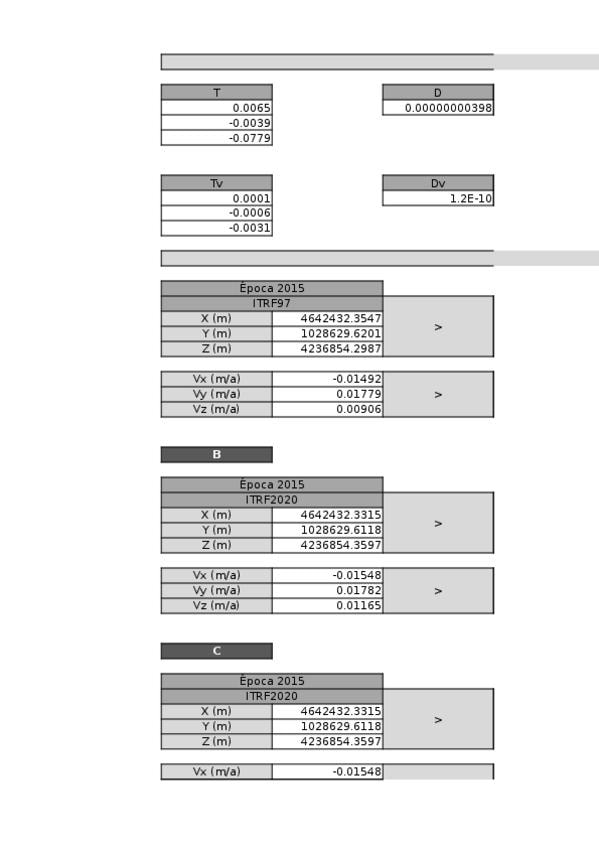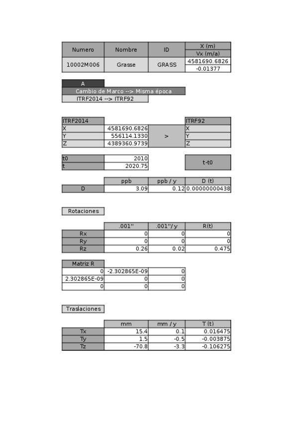 Transformaciones instantáneas entre sistemas de referencia ITRF y ETRF. Sirve como ayuda en el examen final.