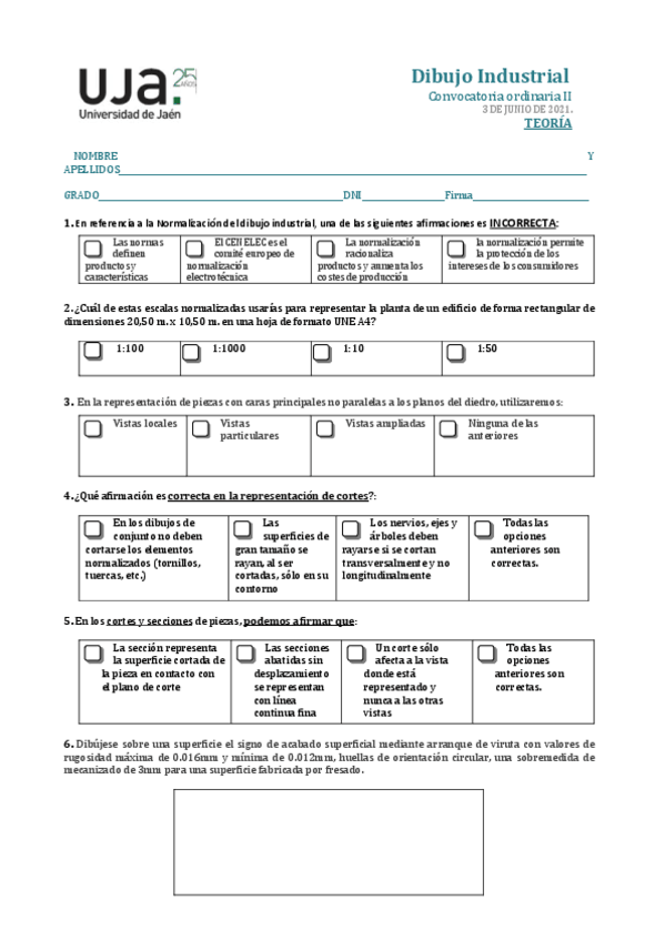 He publicado nuevos examenes de 1º Dibujo Industrial: examen junio 2021