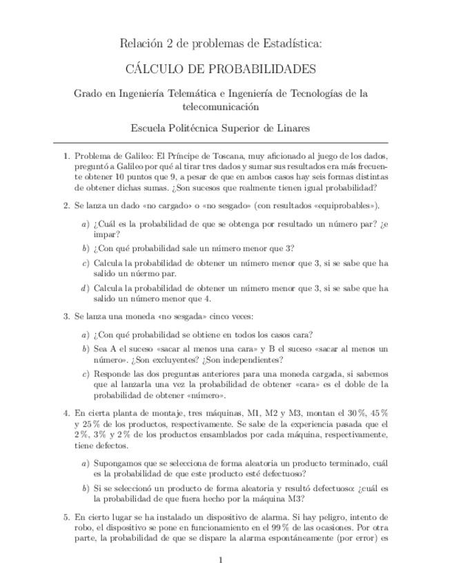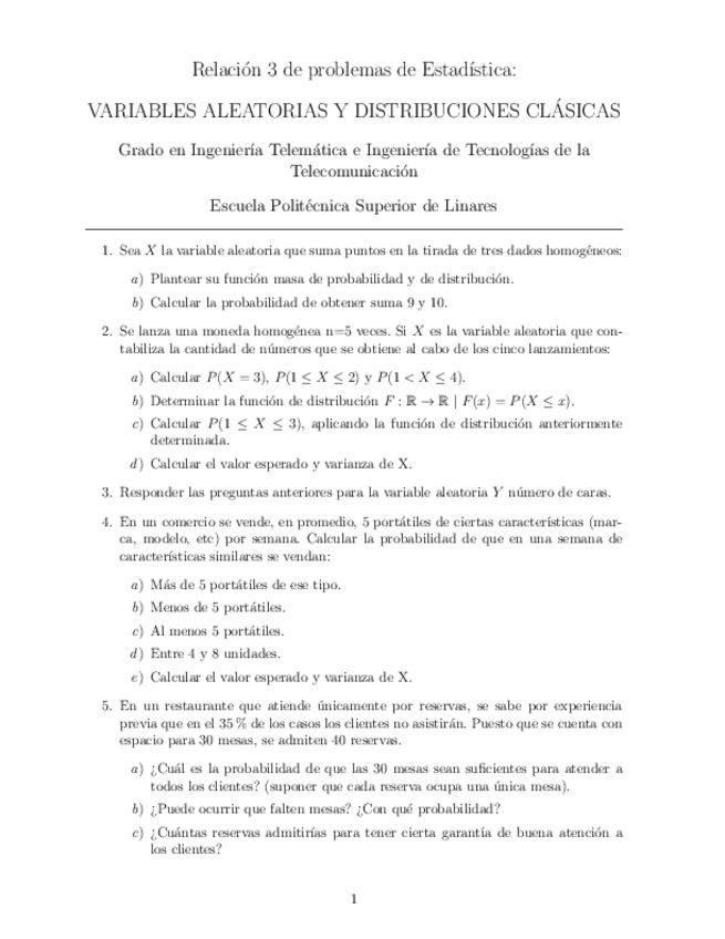 Se adjuntan las distintas relaciones recomendadas por el profesor para afrontar el examen a su totalidad