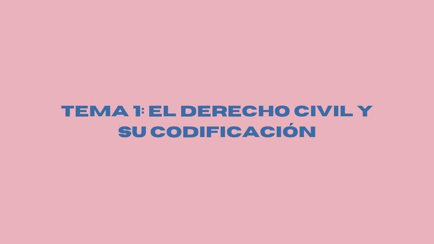 Tema uno (El Derecho Civil y su codificación) sintetizado en una presentación. Colores agradables y letras grandes y fáciles de leer