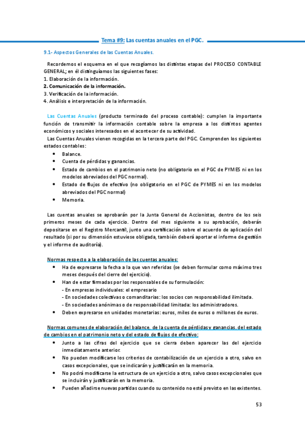 Temas y ejercicios, Test de repaso y Cuadro de Cuentas.