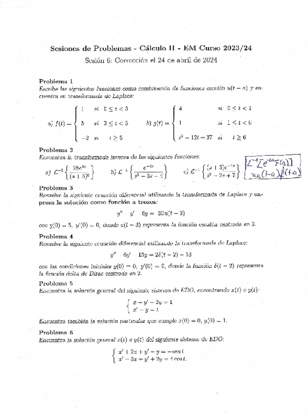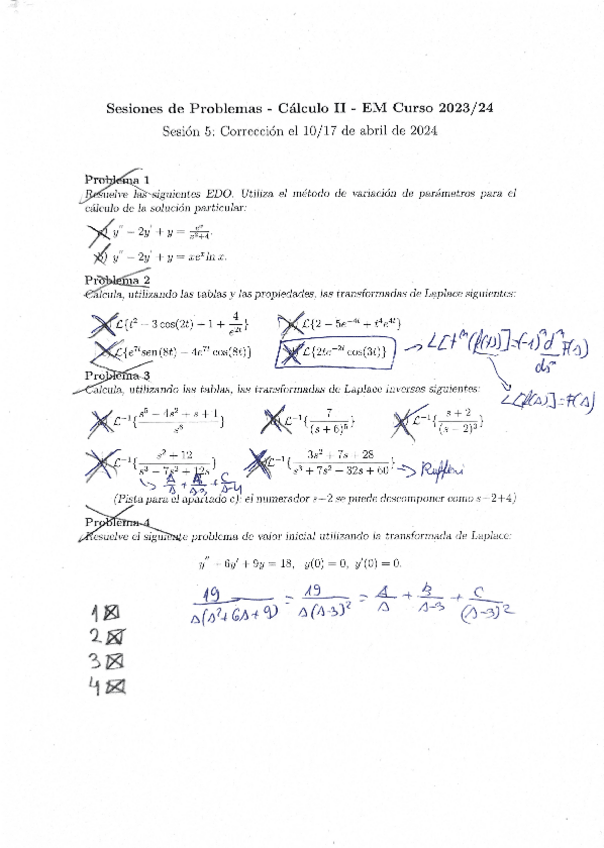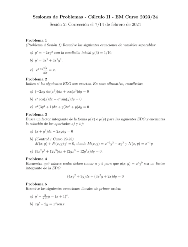 Teoria, sesiones de problemas, examenes