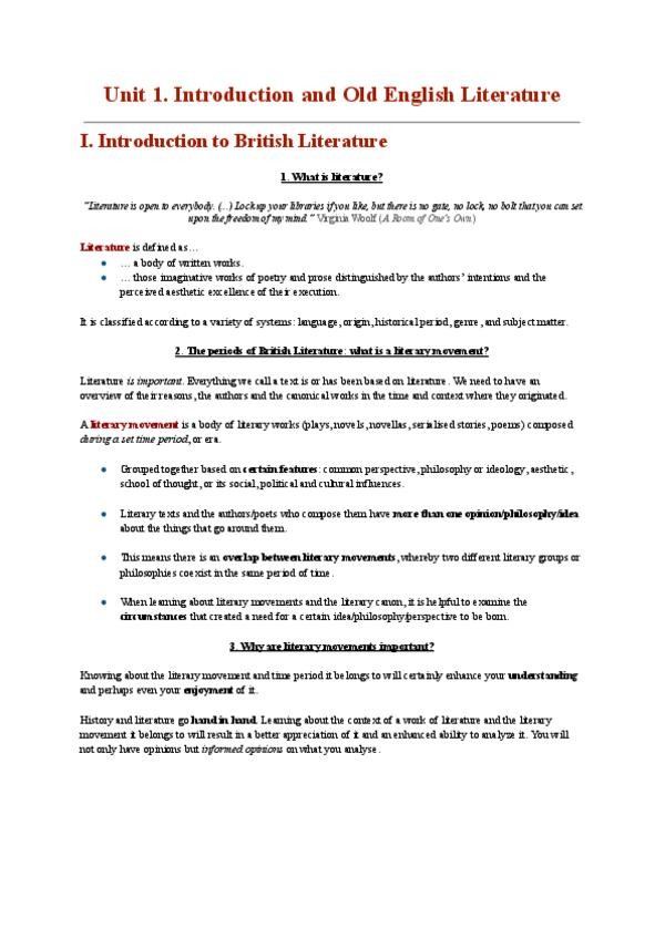 Introducción y Tema 1 - Introducción a la Literatura Inglesa