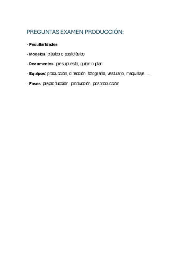 He publicado nuevos apuntes de 3º Producción Audiovisual: PREGUNTAS-EXAMEN-PRODUCCION.pdf