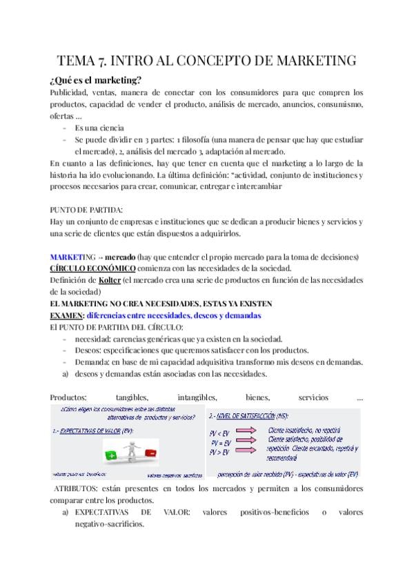 tema 1 de la asignatura de fundamentos de marketing; asignatura del segundo cuatri del primer año en grados como ade, economía, finanzas, marketing...