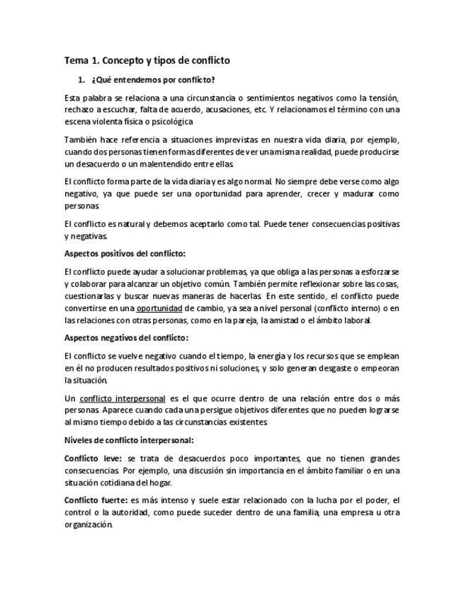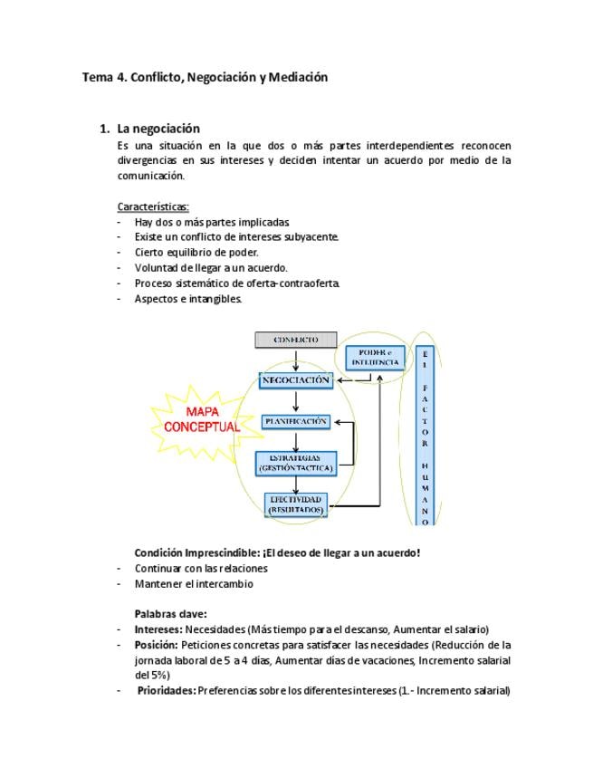 Resumen TEMA 4 de conflicto, negociación y mediación, primero de criminología.