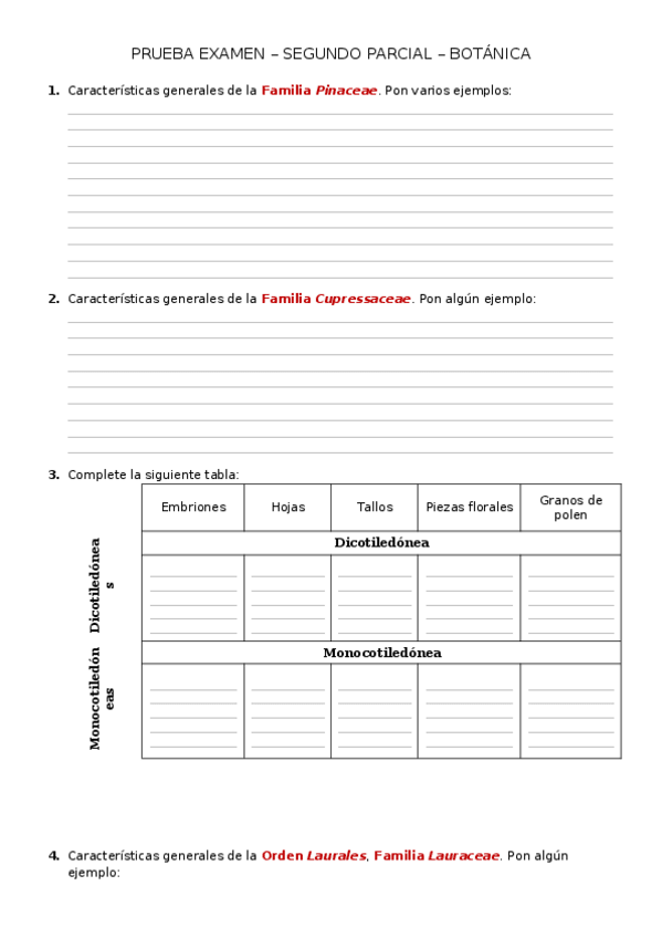 Exámenes botánica