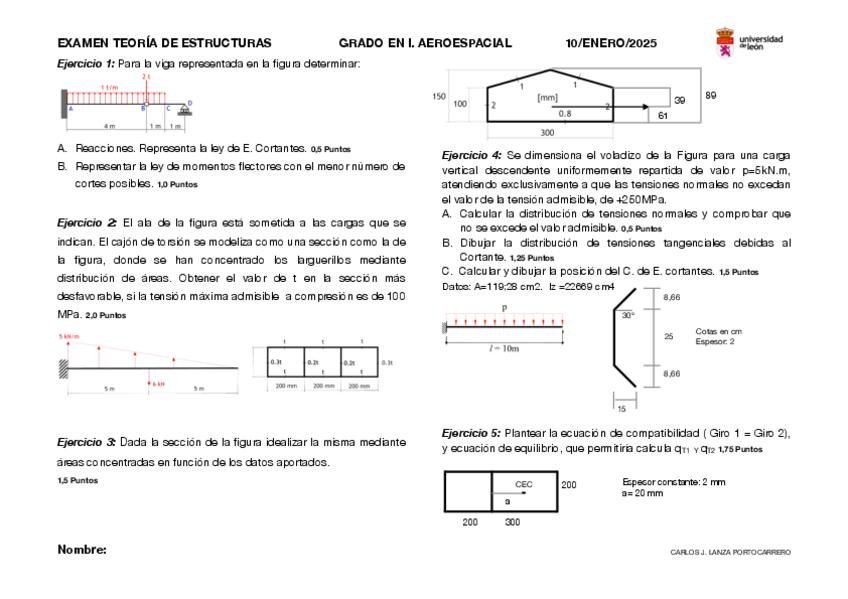 He publicado nuevos examenes de 3º Teoria de Estructuras: examen-aero-25.pdf