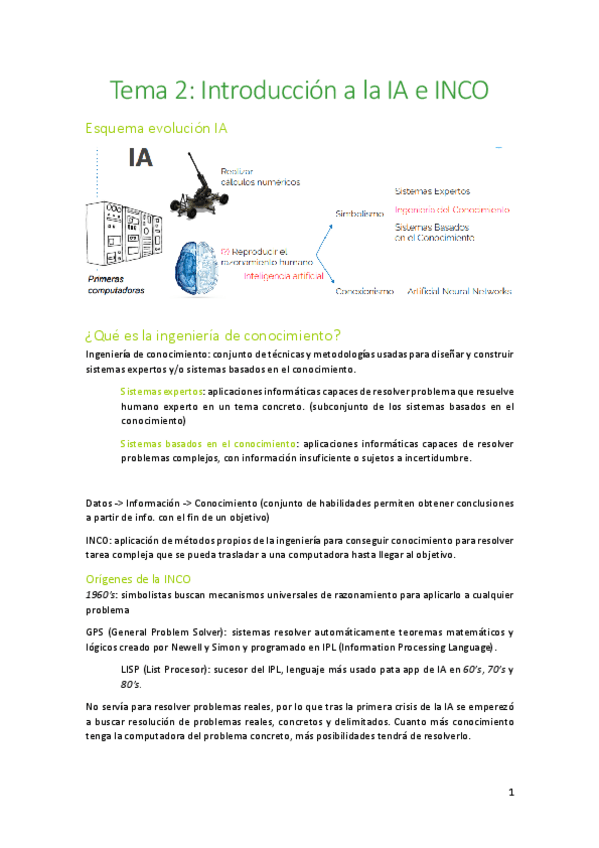 He publicado nuevos apuntes de 2º Sistemas Basados en el Conocimiento: Tema2IntroduccionIAeINCO.pdf
