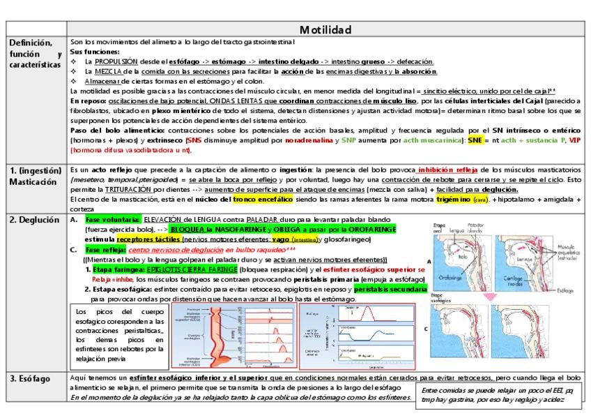 son apuntes en formato tabla de la parte del sistema digestivo, con las caracteristicas que suele preguntar