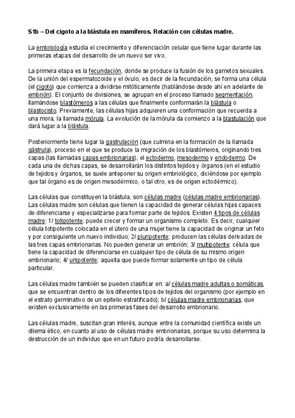 1º seminarios de biología celular: comparación entre célula de músculo liso y célula de músculo estriado, del cigoto a la blástula en mamíferos y relación con células madre, comparación estructural y fisiológica entre cloroplastos y mitocondrias y desde u