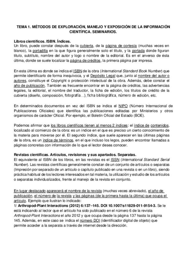 Resumen tema 1 BC: MÉTODOS DE EXPLORACIÓN, MANEJO Y EXPOSICIÓN DE LA INFORMACIÓN CIENTÍFICA. SEMINARIOS.