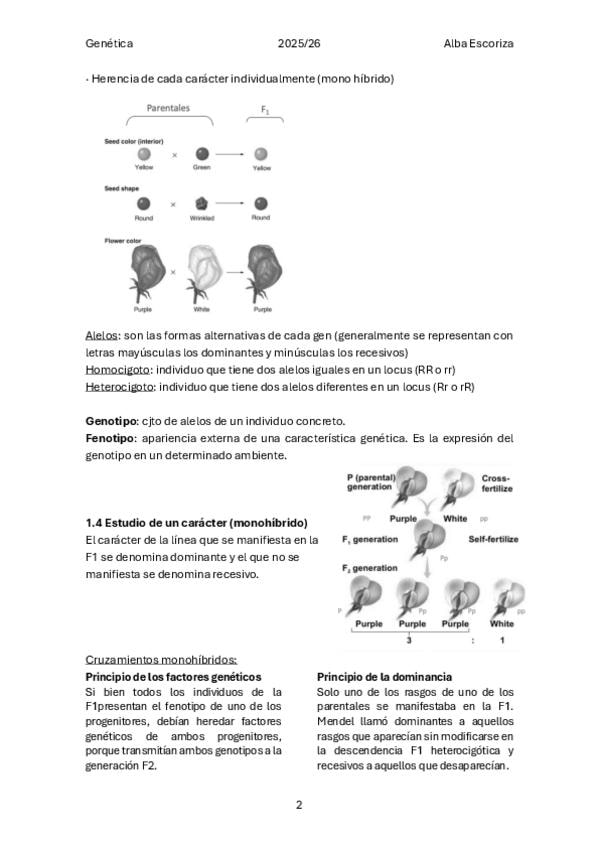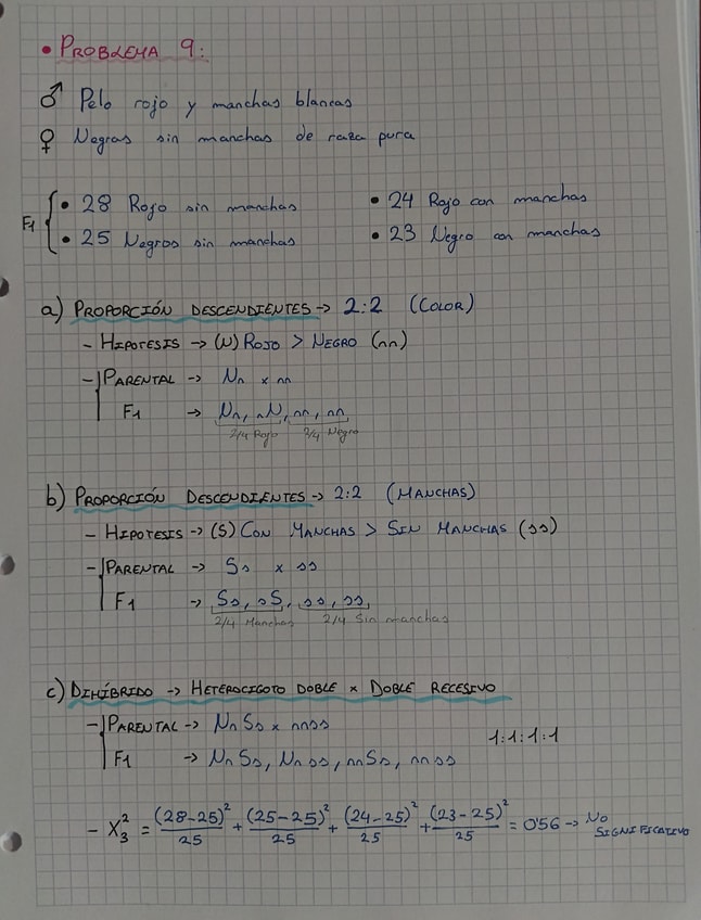 Ejercicio Genética, 2° Práctica de clase 1° Biología.