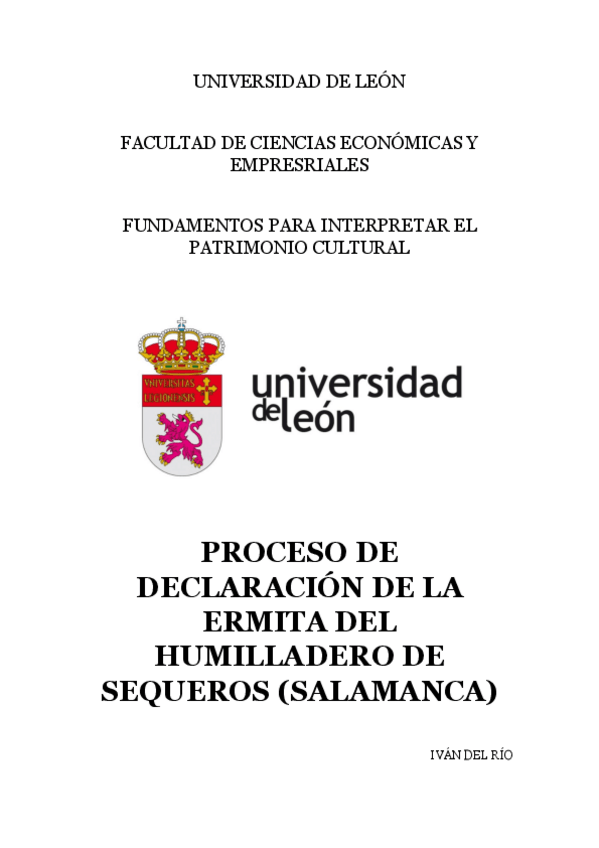 He publicado nuevos trabajos de 3º FUNDAMENTOS PARA INTERPRETAR EL PATRIMONIO CULTURAL: PROCESO DE DECLARACIÓN DE LA ERMITA DEL HUMILLADERO