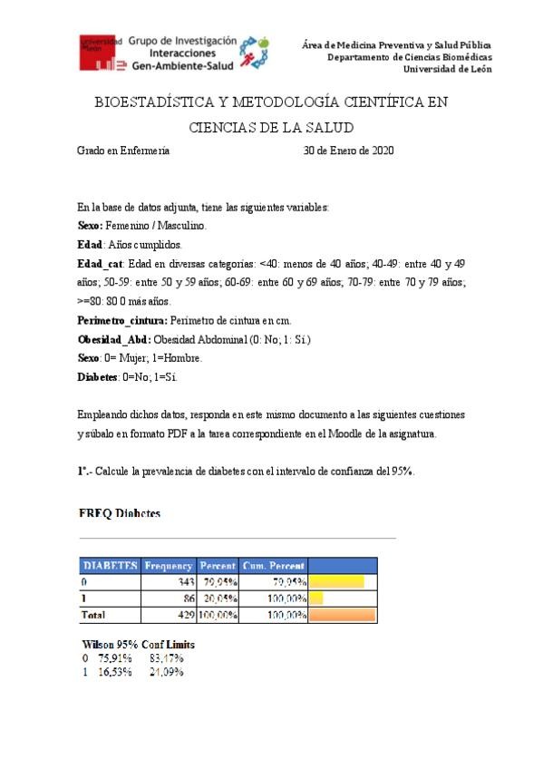 He publicado nuevos examenes de 1º BIOESTADÍSTICA Y METODOLOGÍA CIENTÍFICA EN CIENCIAS DE LA SALUD: Bioestadistica-examen-resuelto-1.pdf