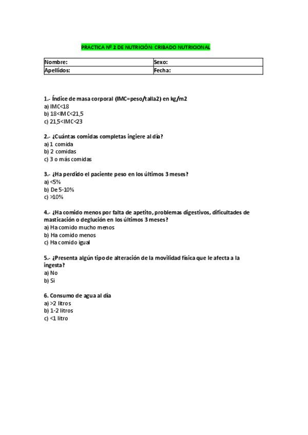 Cuestionario de la práctica 1 de enfermería del adulto, preguntas rescatadas para exámenes.