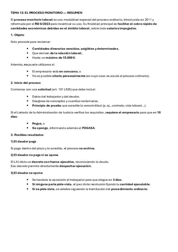He publicado nuevos apuntes de 3º Derecho Procesal del Trabajo I: TEMA-12-EL-PROCESO-MONITORIO-RESUMEN.pdf