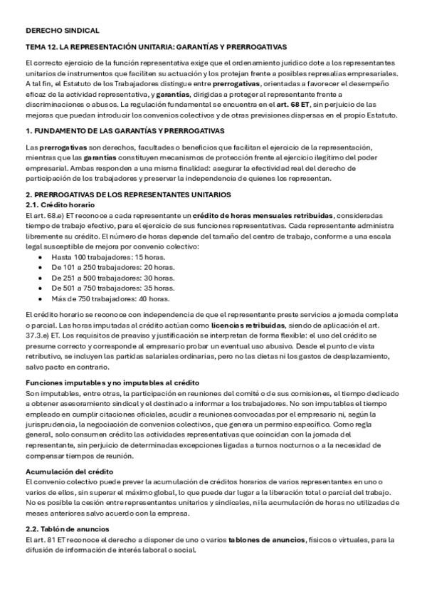 He publicado nuevos apuntes de 3º Derecho Sindical I: TEMA-12.-LA-REPRESENTACION-UNITARIA-GARANTIAS-Y-PRERROGATIVAS-Resumen.pdf