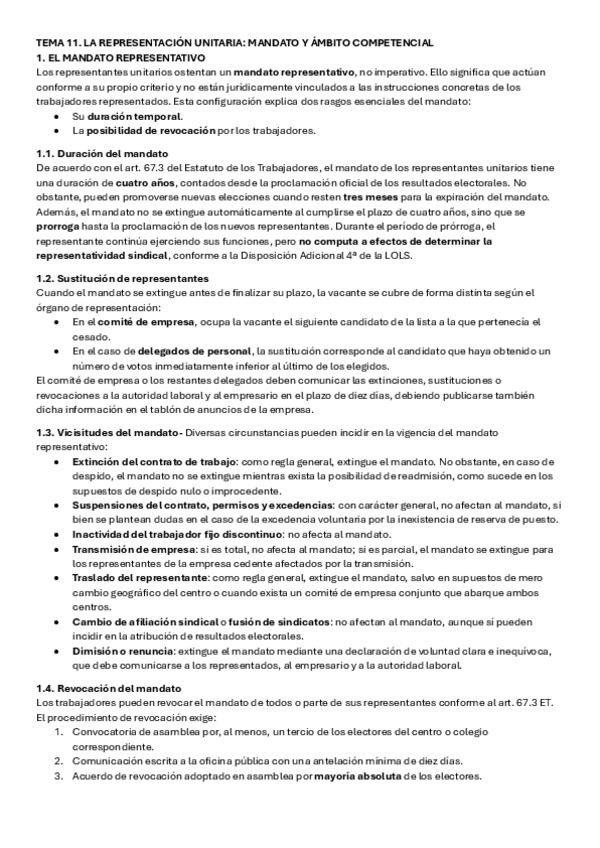 He publicado nuevos apuntes de 3º Derecho Sindical I: TEMA-11.-LA-REPRESENTACION-UNITARIA-MANDATO-Y-AMBITO-COMPETENCIAL-Resumen.pdf