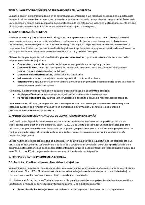 He publicado nuevos apuntes de 3º Derecho Sindical I: TEMA-9.-LA-PARTICIPACION-DE-LOS-TRABAJADORES-EN-LA-EMPRESA-Resumen.pdf