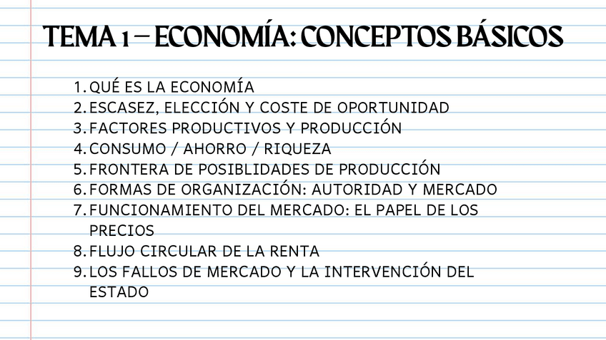 apuntes temas1-5 teoría y practica economía, con ejercicios tipo test, verdadero falso y desarrollo del libro